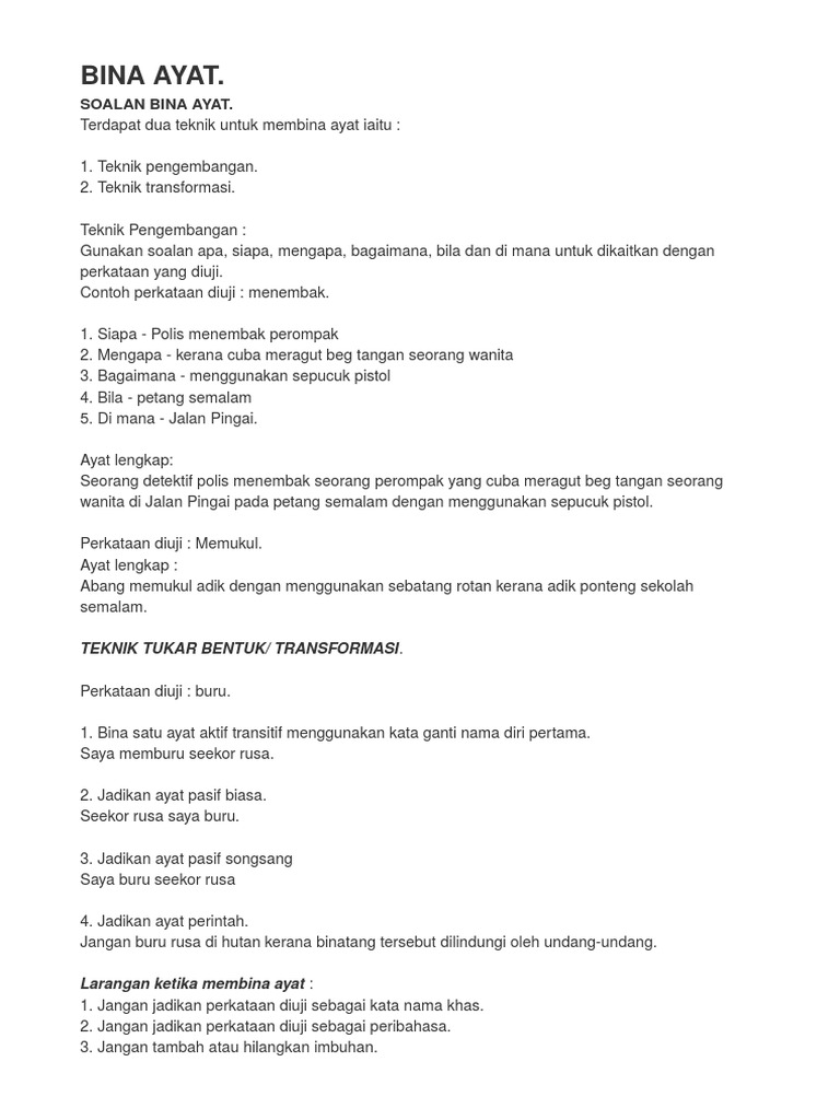 Bina Ayat Menggunakan Perkataan Atau Tingkatan 3