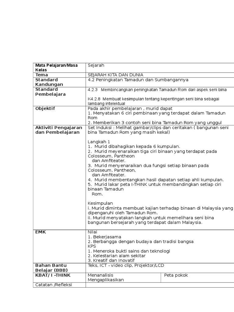 Doc Peningkatan Tamadun Pengenalan Anom Syukri Academia Edu. 54 KSSM SEJARAH TINGKATAN 1 Tugasan anda hendaklah mengandungi aspek berikut. Bangunan dengan seni bina yang unik ala kebesaran Empayar Rom mampu memuat 50000 orang di dalamnya.