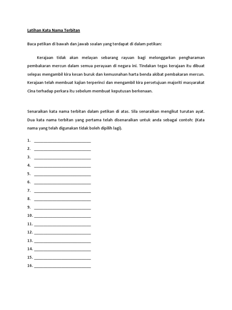 Contoh soalan bina ayat daripada kata nama terbitan. Bahasa Melayu Flip Ebook Pages 1 15. Kata Nama Am Dan Khas Latihan Tahun 1. Kata ganti nama diri orang kedua dalam ayat perintah.