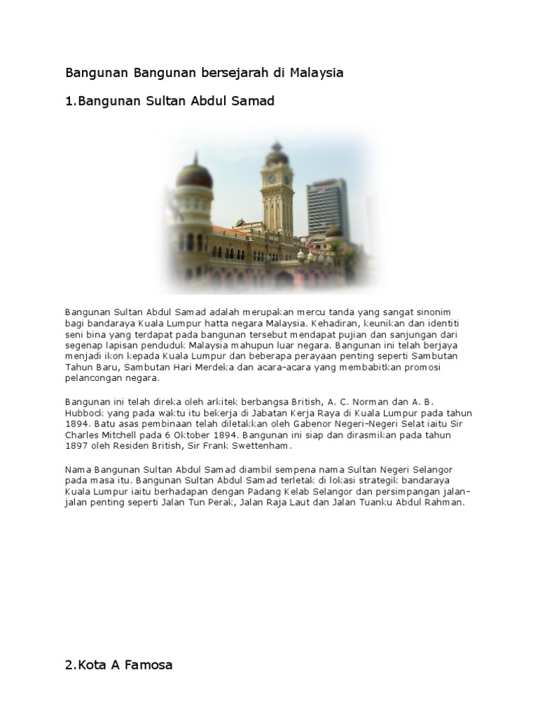 Bangunan Bangunan Bersejarah Di Malaysia Pdf